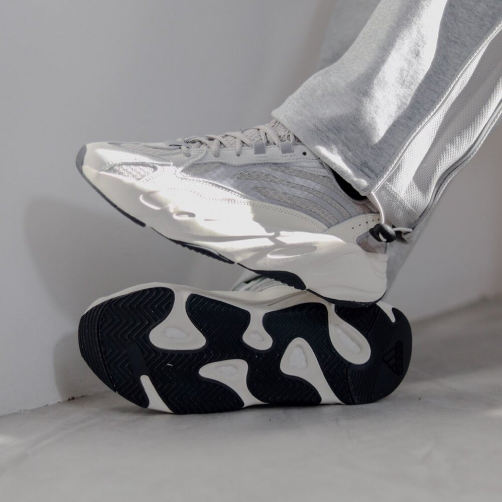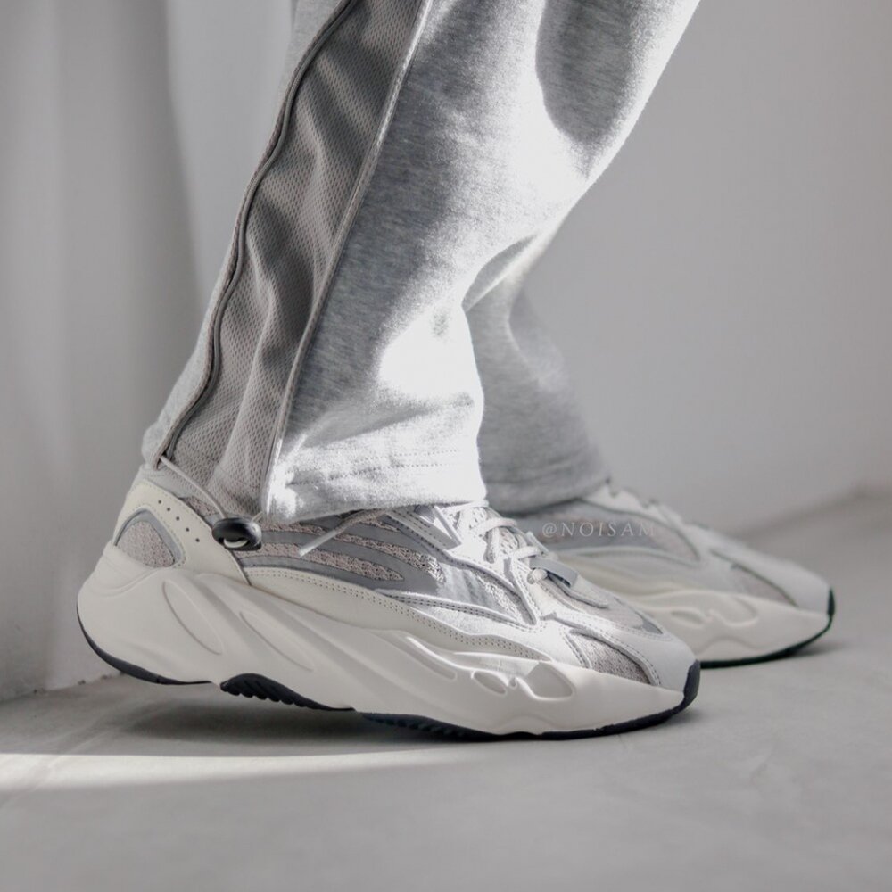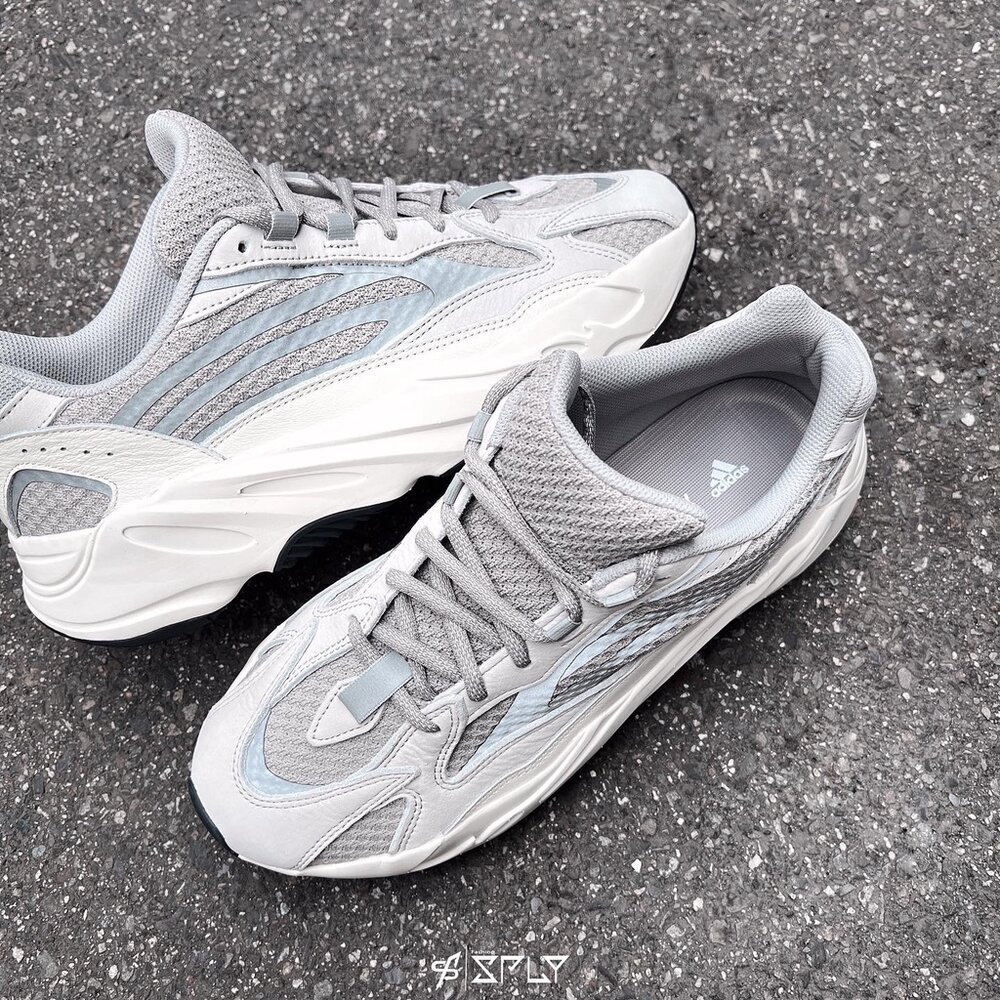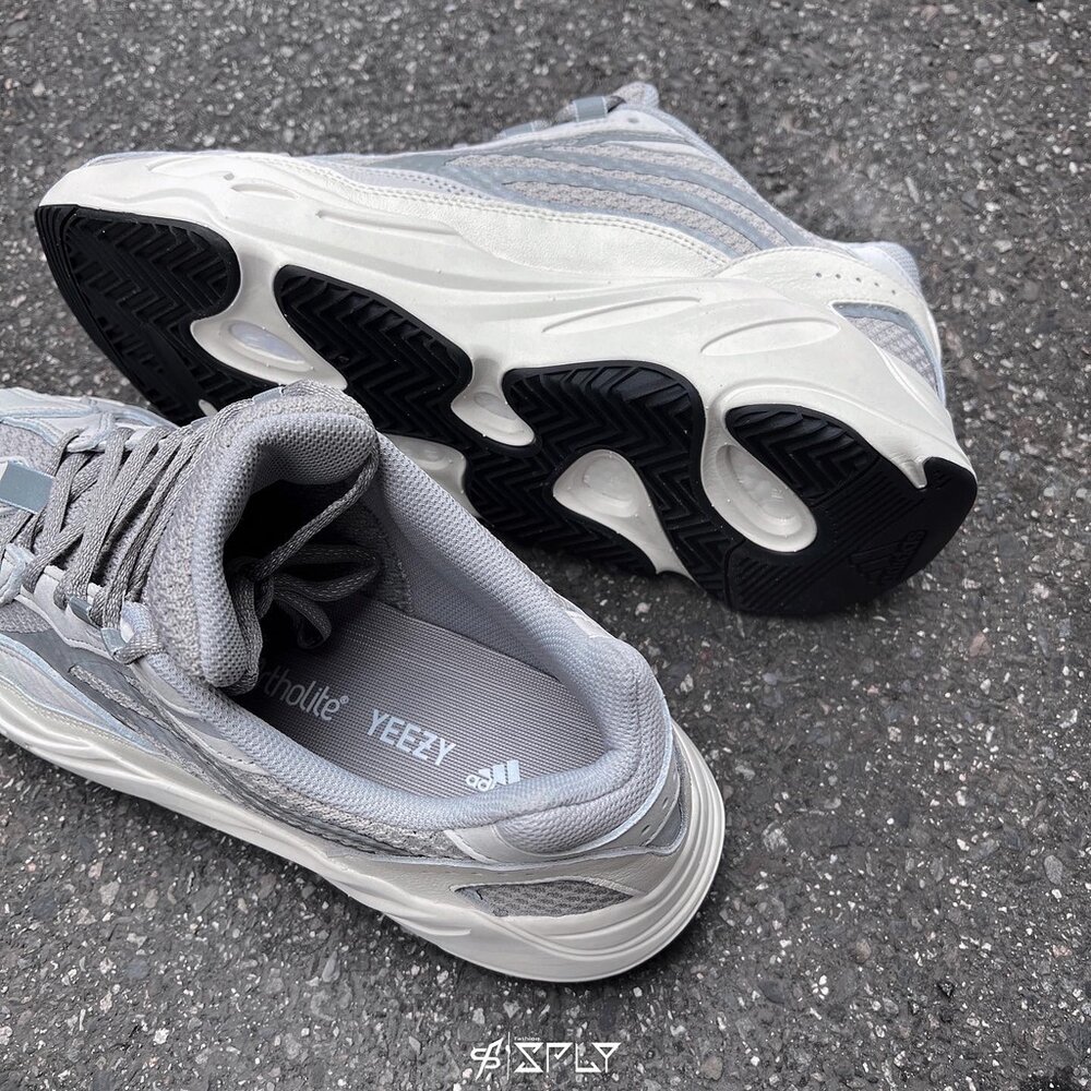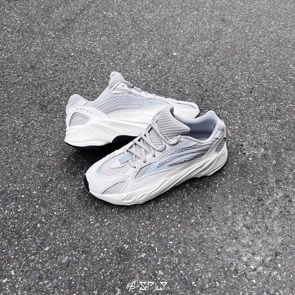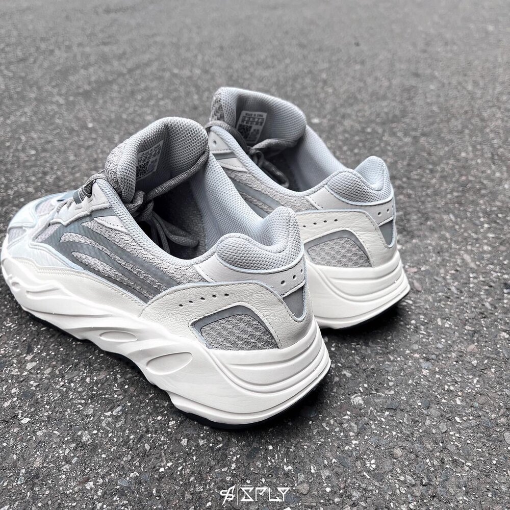 adidas 與 Kanye 聯手推出 adidas Yeezy 700 V2 Static。這款 Yeezy 700 配有灰色鞋面、白色點綴、白色中底和黑色鞋底。