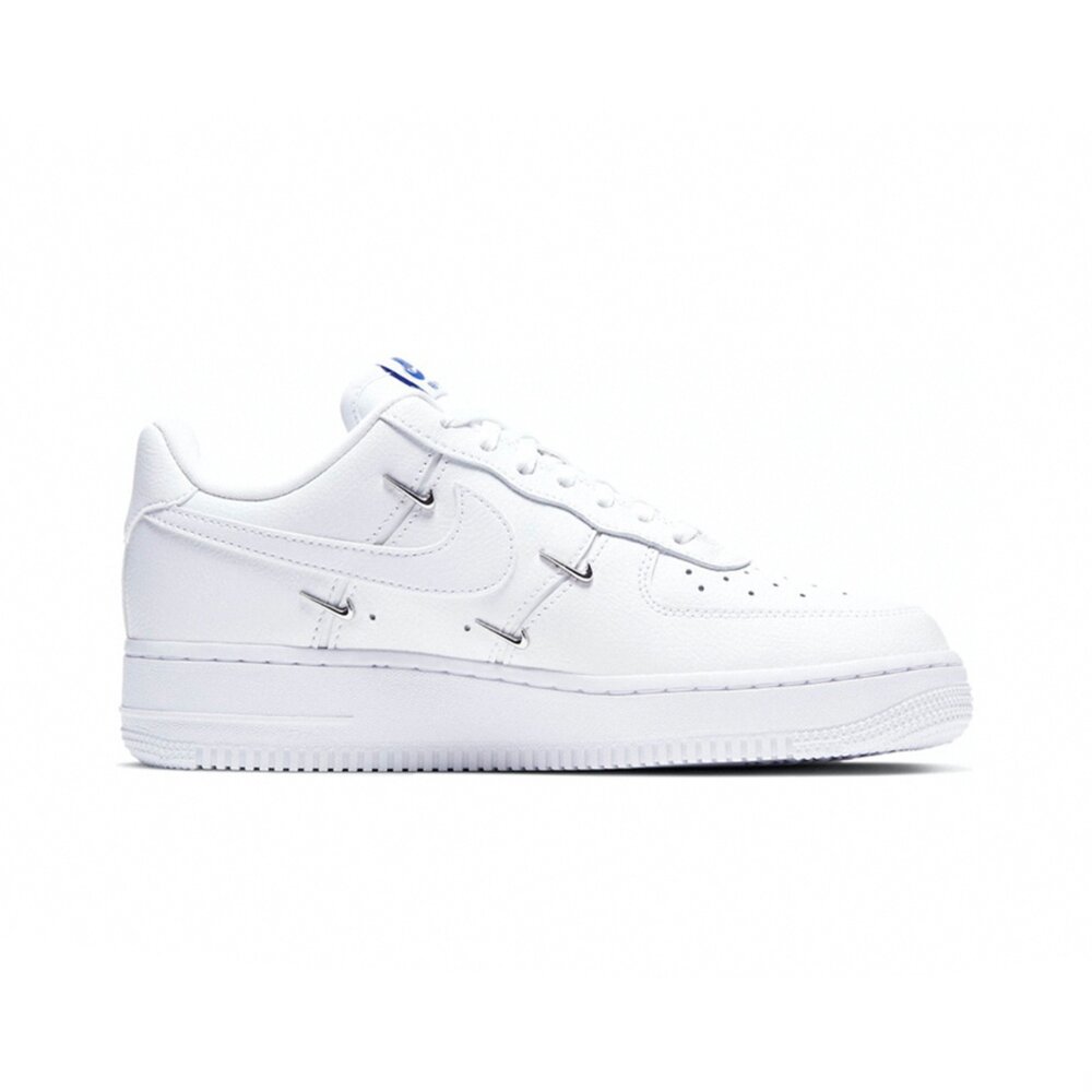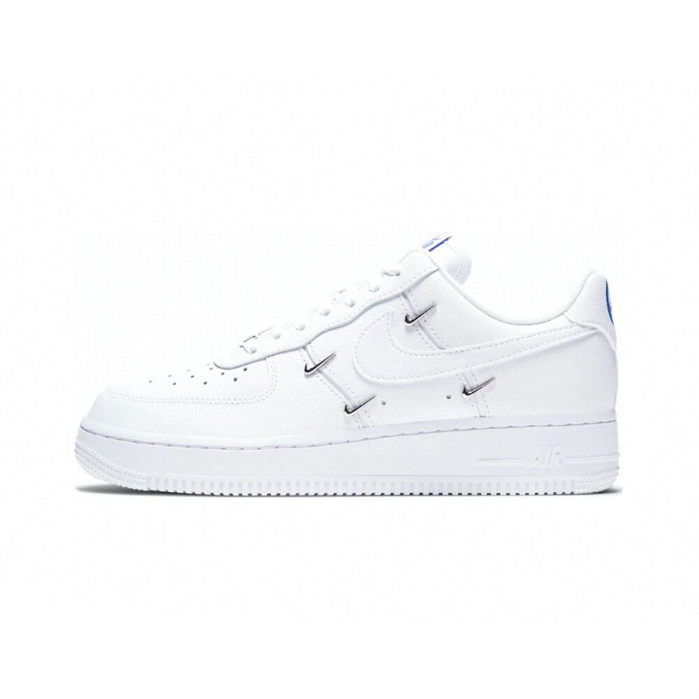 這款設計以經典全白外觀呈現,搭配細緻的小銀色細節,展現低調卻不失質感的風格。鞋面採用高品質皮革,帶來柔軟舒適的穿著體驗,同時兼具耐用性。中底內建 Air 緩震科技,提供良好的支撐與回彈,適合日常長時間著用。