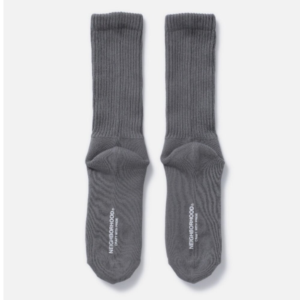 中筒長度的羅紋襪子,襪子底下印有標誌。採用棉混紡紗線。 材質:棉 85%、聚酯纖維 7%、尼龍 5%、聚氨酯 3% SIZE:FITS ALL 25〜27