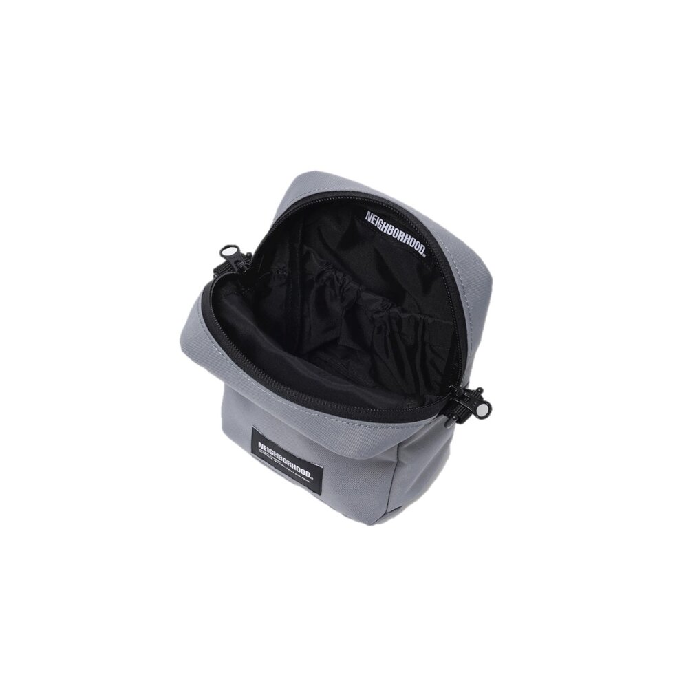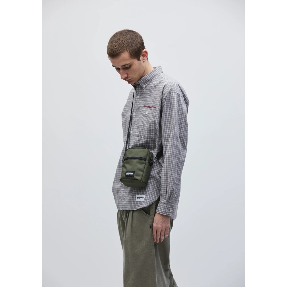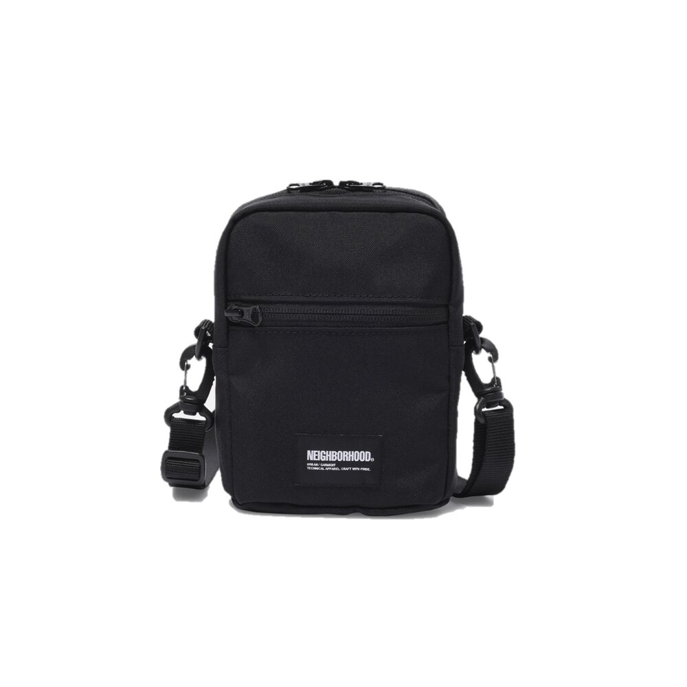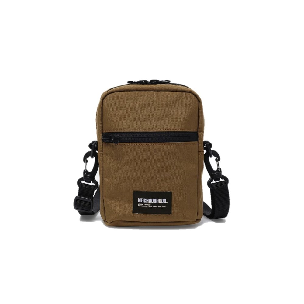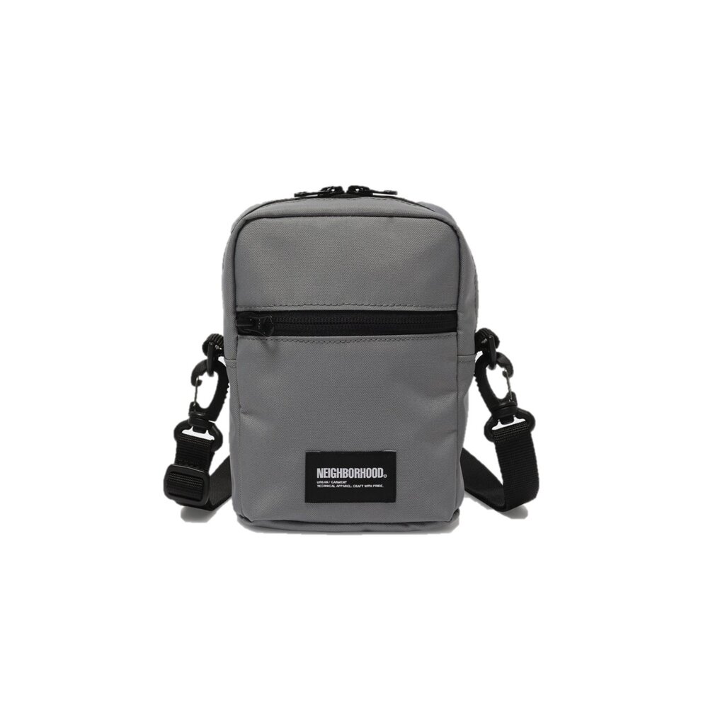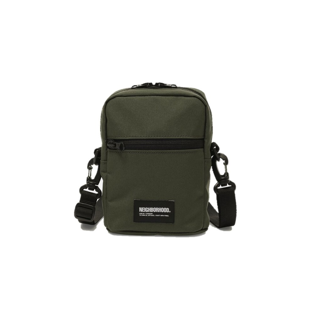 由環保聚酯製成的單肩包,帶有名牌。生態聚酯材料