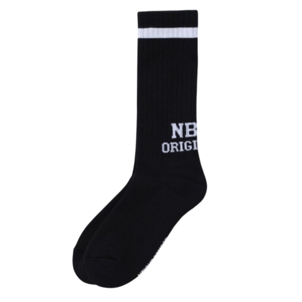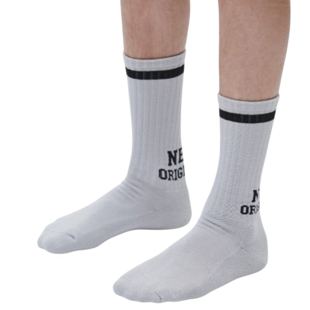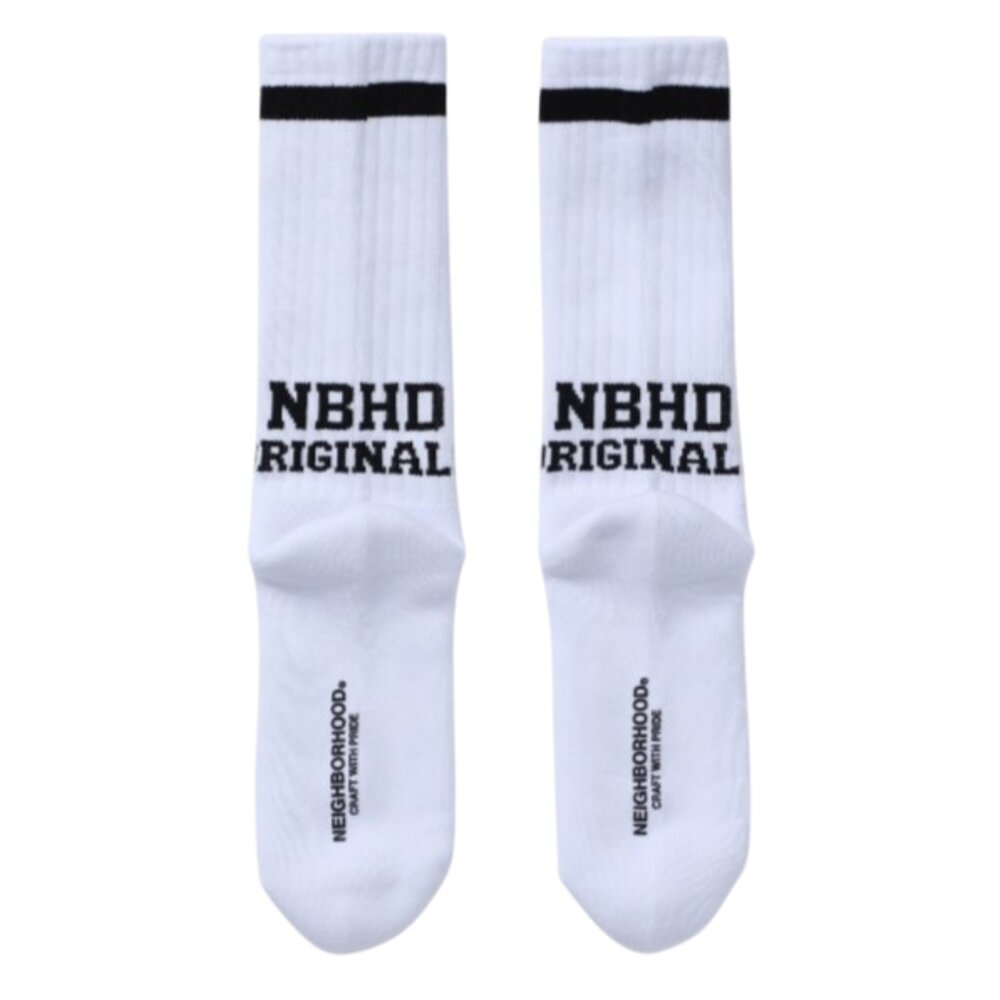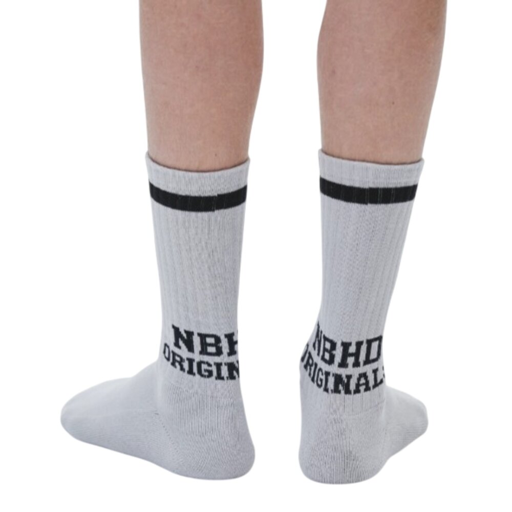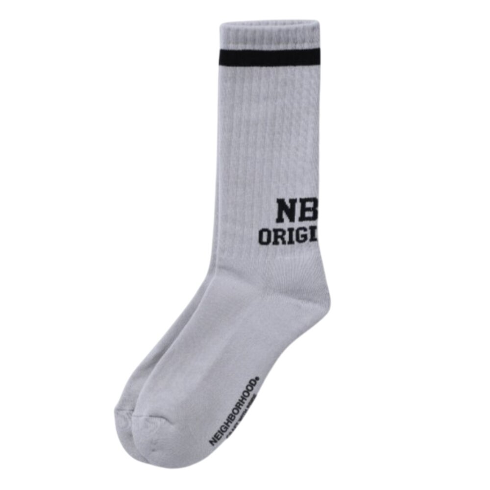 羅紋襪,腿部有提花針織logo線。採用棉混紡紗線。鞋底印有logo。