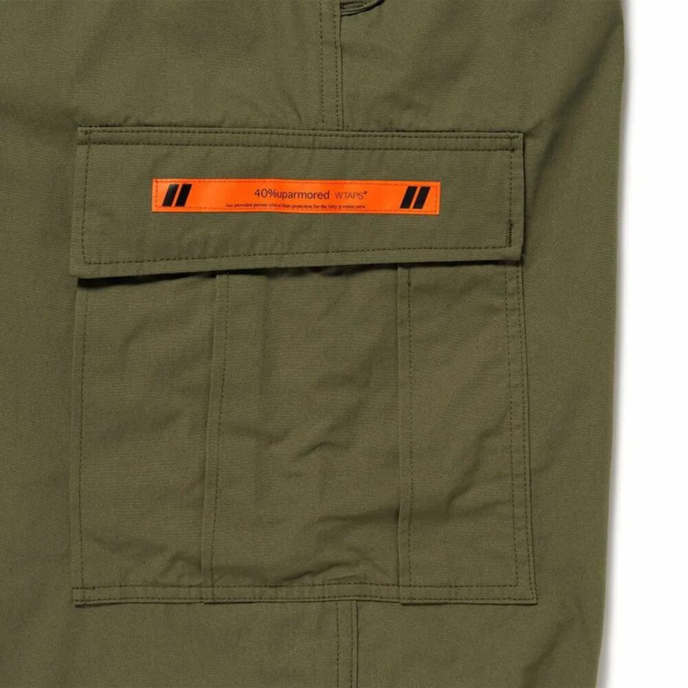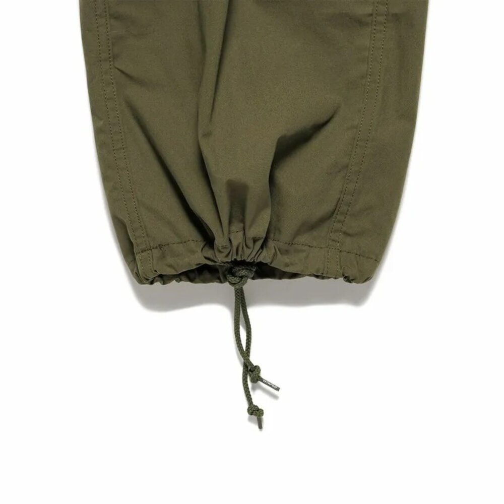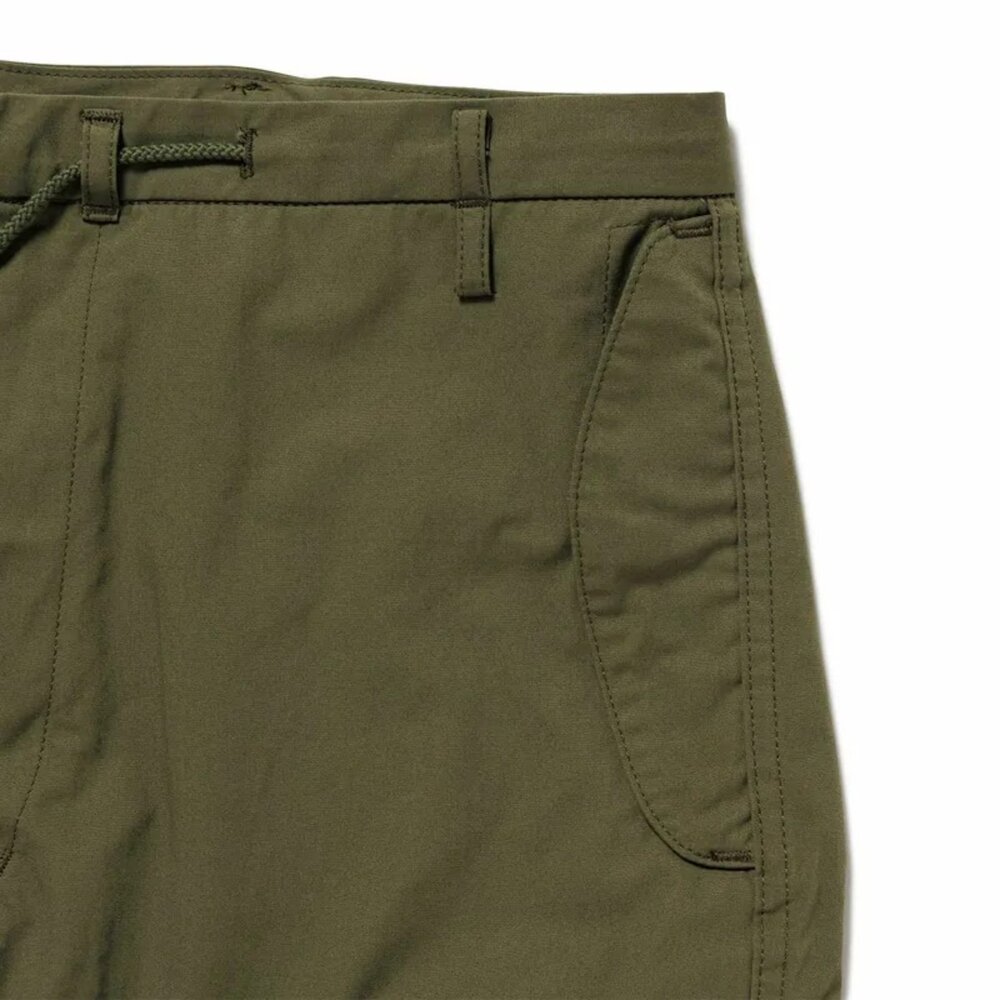 CORDURA® 尼龍的網眼面料,使用了六個口袋的寬鬆褲。在右側邊緣有兩條線標示尺寸和品牌名稱。腰部和腿部內藏拉繩可調節。前面的膝部分會輔助活動。左側的卡片口袋上有三種組合標籤。