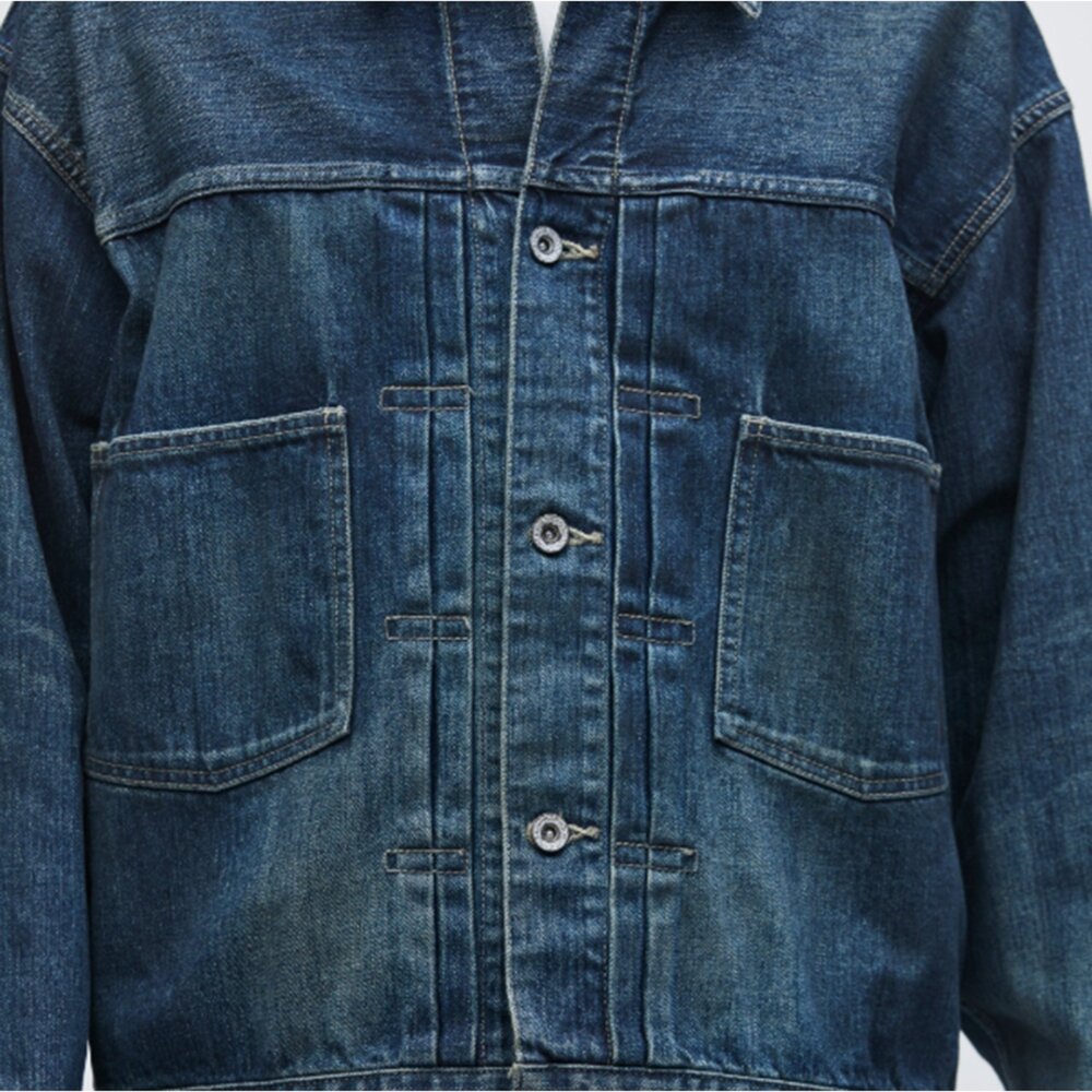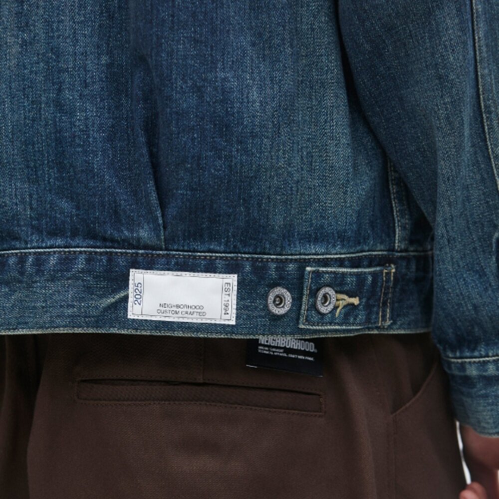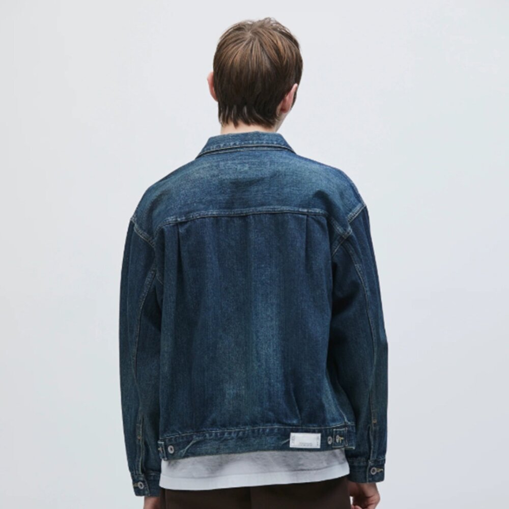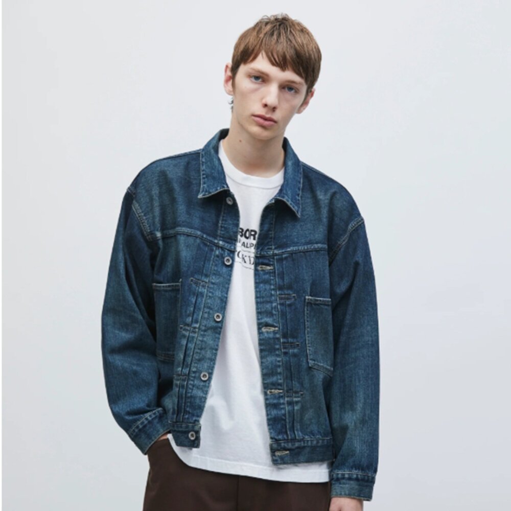 採用損壞處理使夾克呈現出逼真的陳舊外觀,就像顏色自然褪色一樣。採用原創的褶襉紐扣、鉚釘和彩色縫線進行細節設計。左下擺處有品牌標籤,側縫處附有夾子標籤,尺寸標籤專為客製化物品而設計。