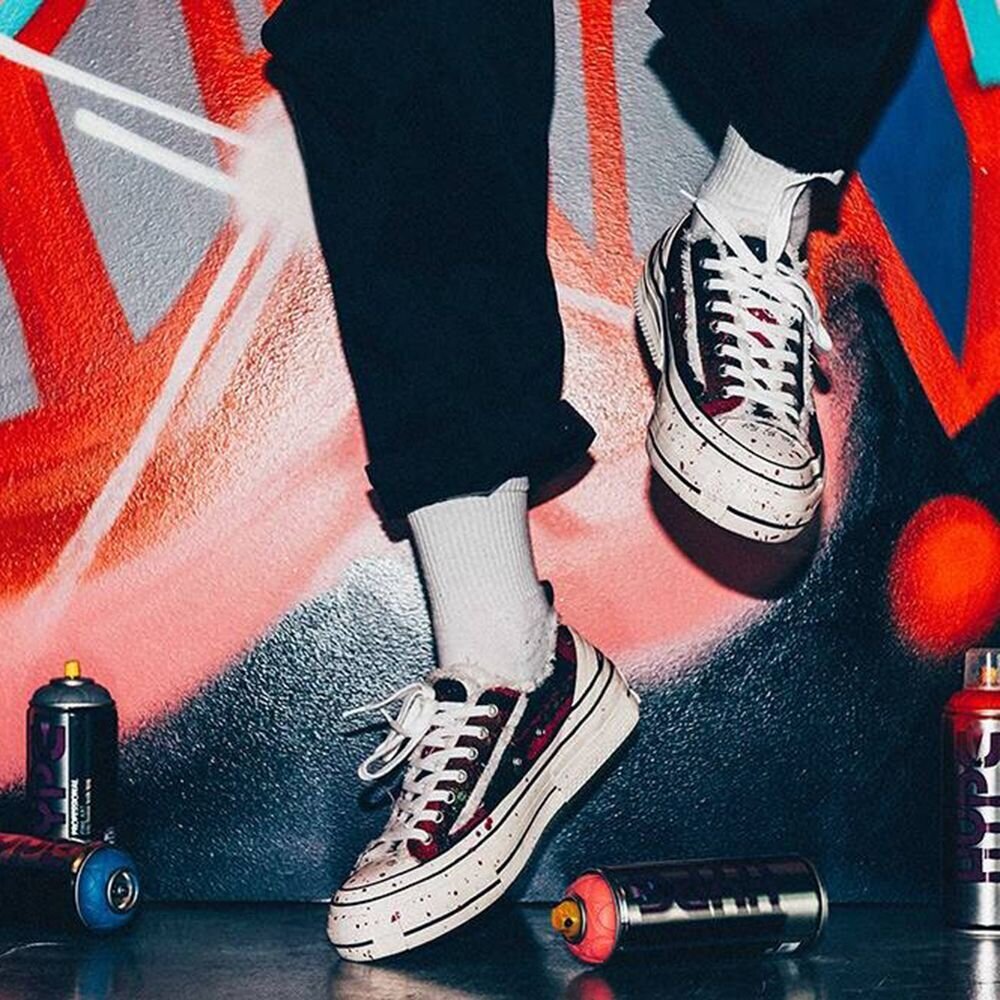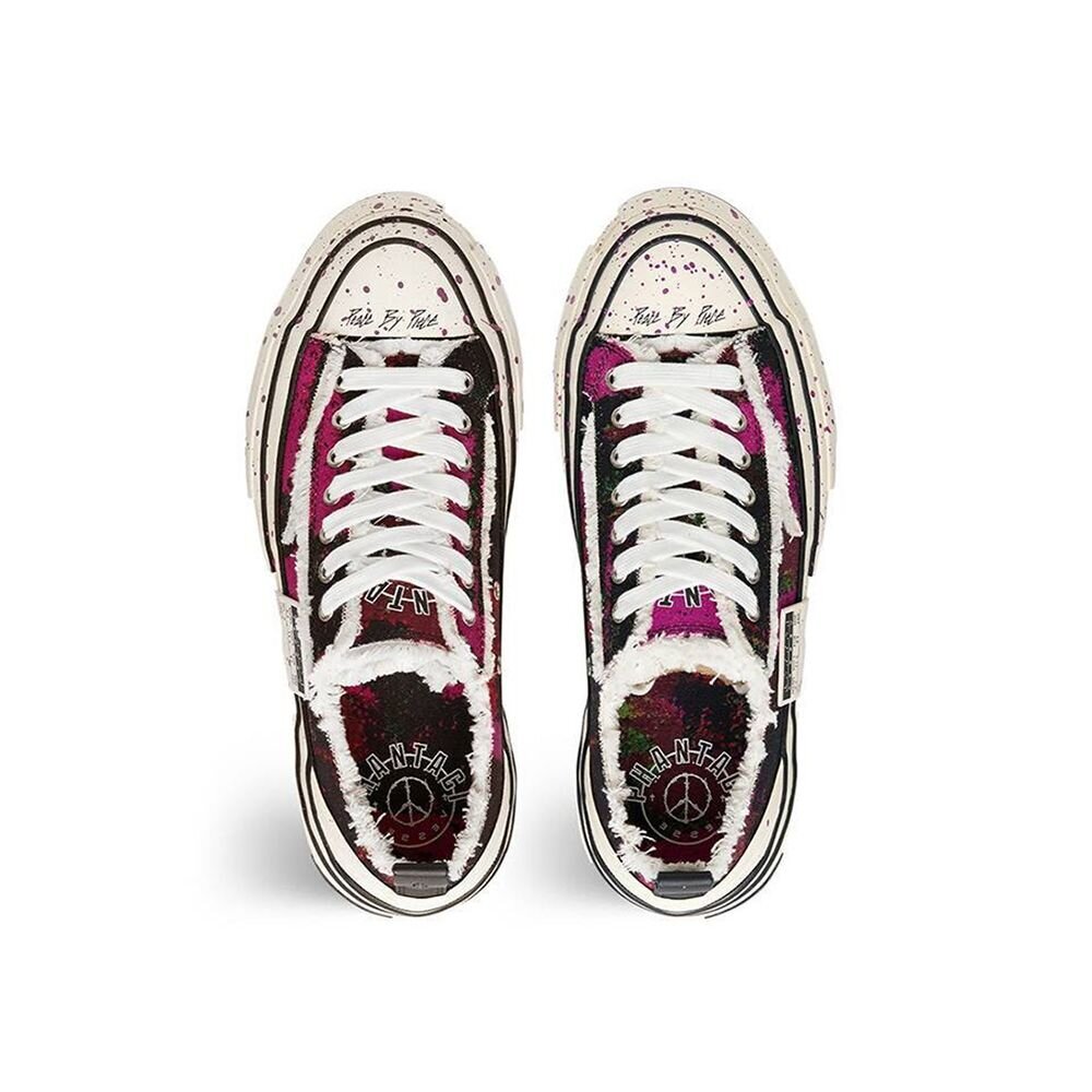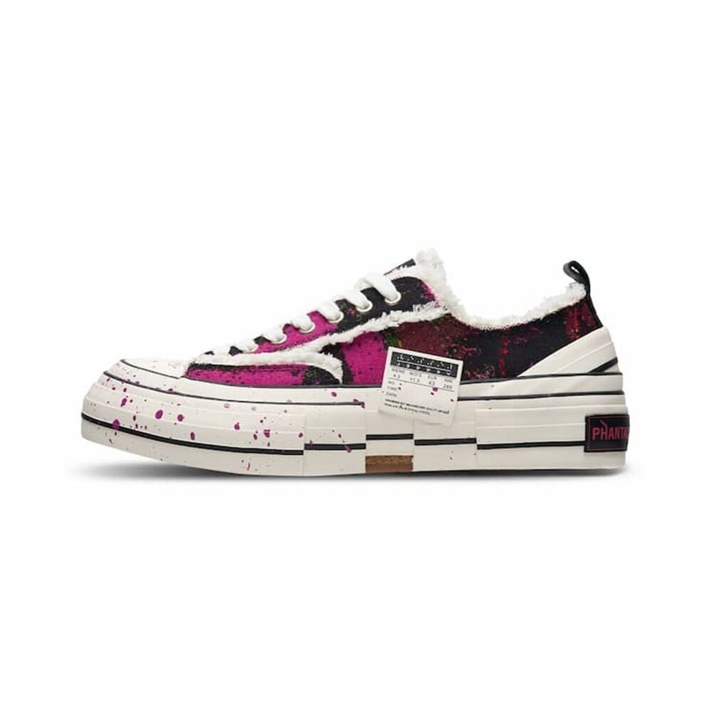 細膩手工製作且蘊含多種精湛工藝技法,延續 xVESSEL 獨樹一幟的「解構」設計基因,以硫化帆布鞋作為基底,透過解構堆疊營造錯位。鞋面的帆布再經過打磨製造破壞流鬚效果。加上軟木硫化的中底結構,增強了穿著上的舒適度,並在大底上再飾以「將生命力注入鞋款」的藝術設計,模擬藝術家創作過程中雙腳著地時,濺射而起的顏料,增添抽象而有趣的生動美感,宛如時間被定格在美麗而瞬息萬變的瞬間,勾勒出更富層次的外觀,大膽創造了球鞋的不同風貌。搭配以富有 PHANTACI 辨識度的絢爛色彩作為主色調,明亮的紫色與桃紅色節奏般地描繪出細致入微的顏料層次感,在色塊交織之間跟隨音樂自由跳躍,進而形成獨特的曲線和形態,喚醒「fantasy」般的視覺動態感受,彷彿置身於 JAY CHOU 演唱會之中,開啟一段充滿想像和靈感的藝術之旅。本次聯名完美揉合雙方品牌對潮流精神的詮釋,展示自信奔放、不受時代所拘束的前衛風格創作,透過一件充滿藝術性和工藝性的聯名鞋款將所有的美麗傳遞給所有人。