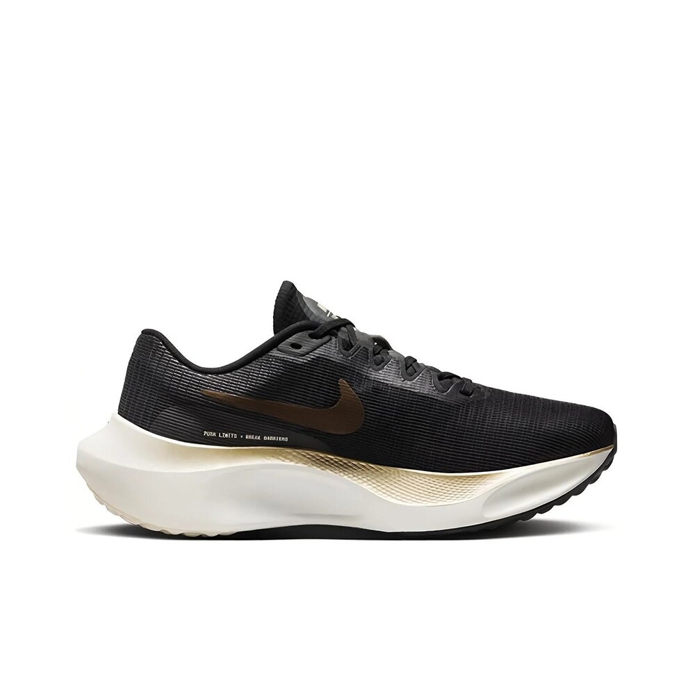 全新 Nike Zoom Fly 5 黑金配色,搭載 ZoomX 泡棉科技,帶來輕盈回彈腳感,助你突破速度極限。透氣網布鞋面舒適包覆,金色細節點綴更顯時尚活力。無論日常跑步訓練或賽場競速,Zoom Fly 5 都是你的不二之選。