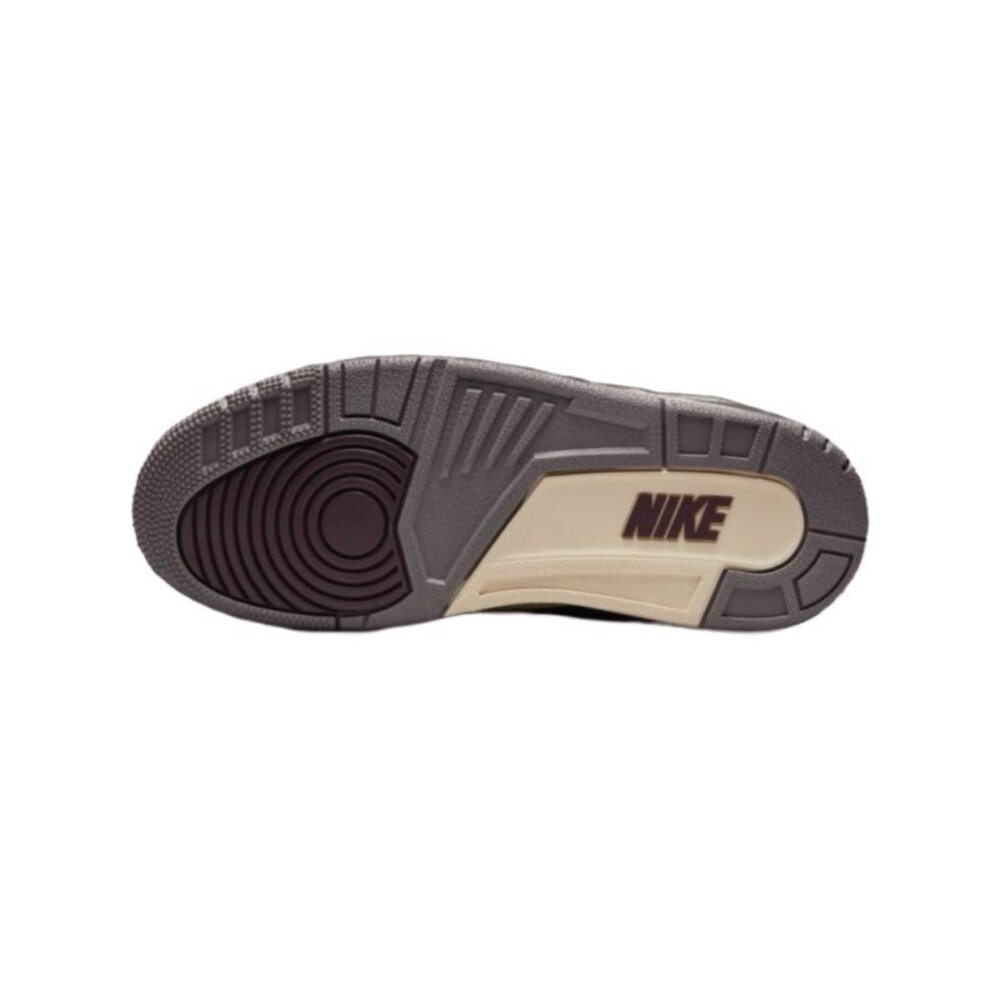 經典雋永又奢華。A Ma Maniére 以此理念為核心,持續以經典 AJ3 的優雅鞋款述說傳奇復刻版型強勢回歸的故事。採用高級黑色皮革,飾有絎縫勃艮第酒紅、礦石紫和金屬銀色裝飾,並以錫合金色粗獷麂皮取代傳統象紋,增添層次與紋理感。為紀念 A Ma Maniére 成立 10 週年,隨附特殊包裝,其中包括鑰匙圈、吊牌和 3 組備用鞋帶。