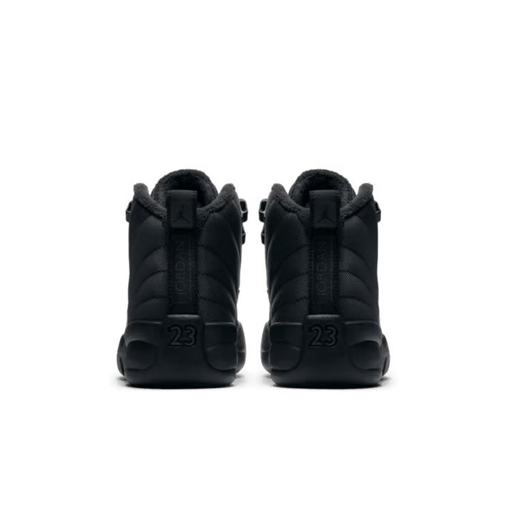 Air Jordan 12 Retro Winterized PS「Triple Black」採用耐用的防風雨尼龍鞋面,並帶有絎縫細節,以致敬旭日旗。這款運動鞋的內襯採用柔軟的毛巾布裝飾,繫帶設計,貼合舒適,擋泥板上有 durabuck 細節。