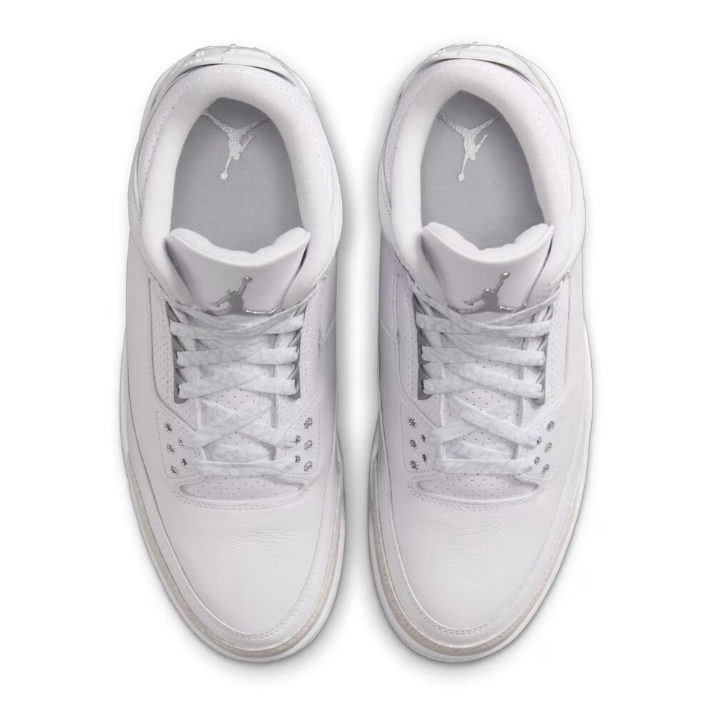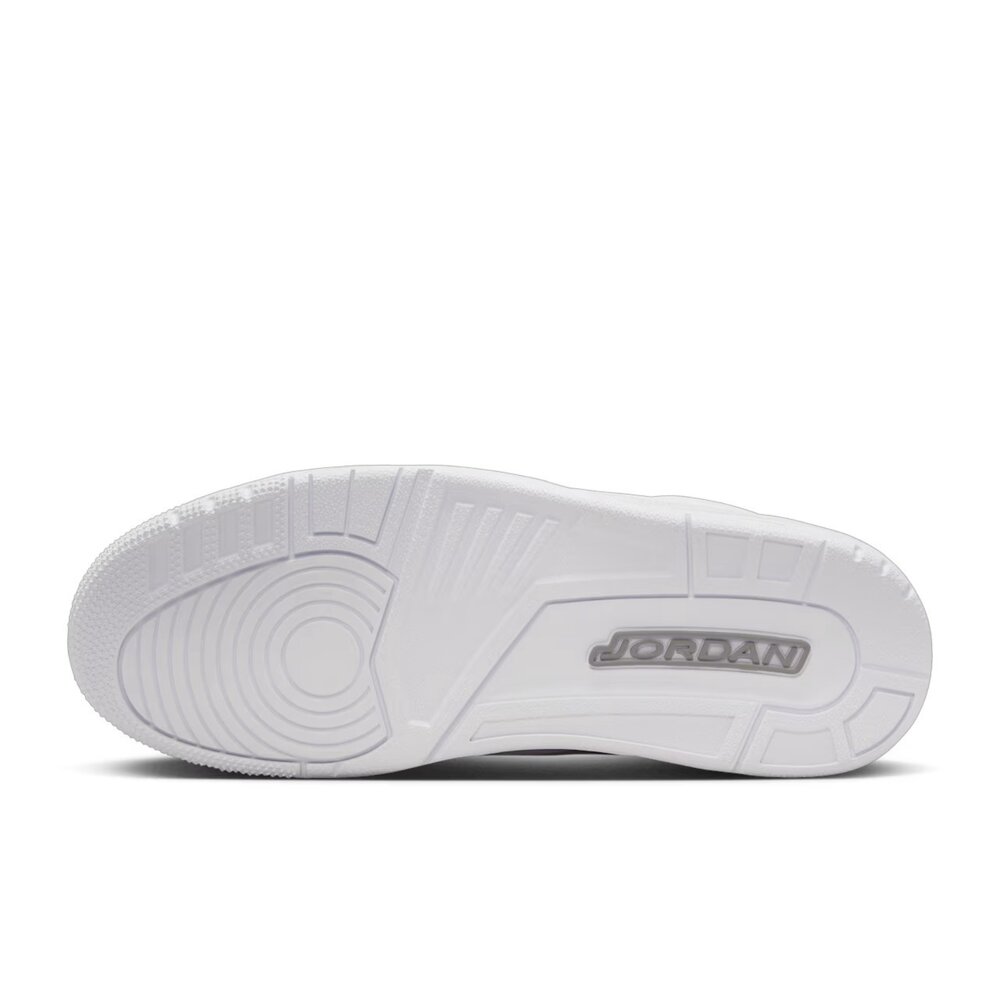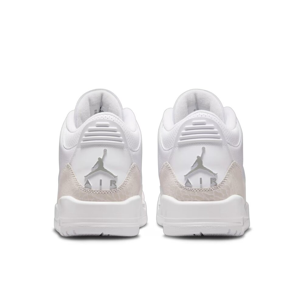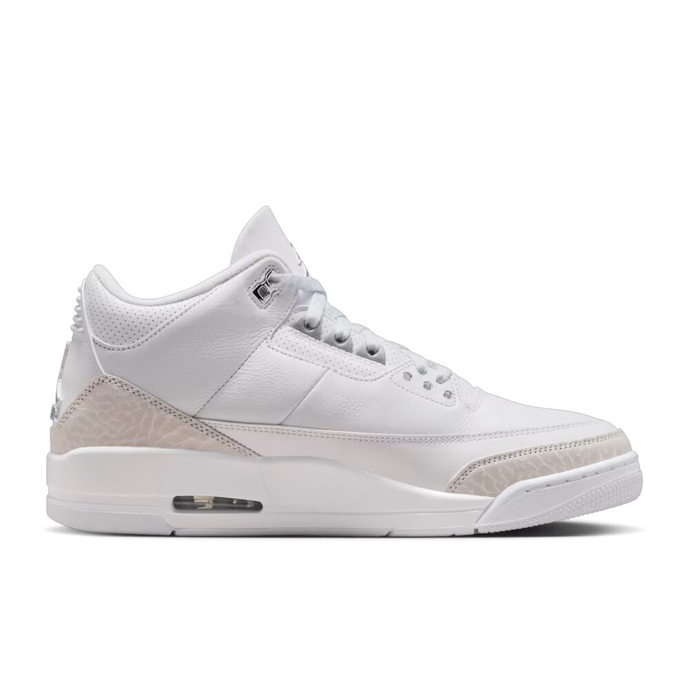 本款經典 AJ3 配色再次回歸,俐落簡約設計,以優質白色皮革配上象紋磨砂皮裝飾片,點綴金屬銀色裝飾和風格獨具的刺繡巧思!