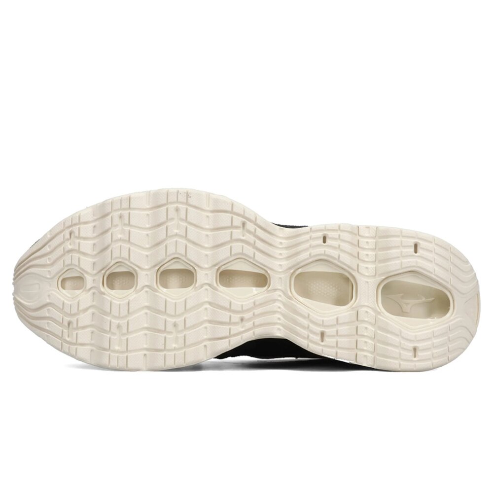 MIZUNO自家開發的Wave Prophecy鞋底,採用了具有中空結構的INFINITY波浪片,將中底老化的因素降至最低,並提供安定與絕佳緩震。鞋面採用了襪套式系統,將鞋舌與鞋口一體化設計,有效解決了鞋舌移位的問題,提升了與腳背的貼合度與包覆感。並採用提高80%的「X10」高耐磨橡膠大底提升耐用度。