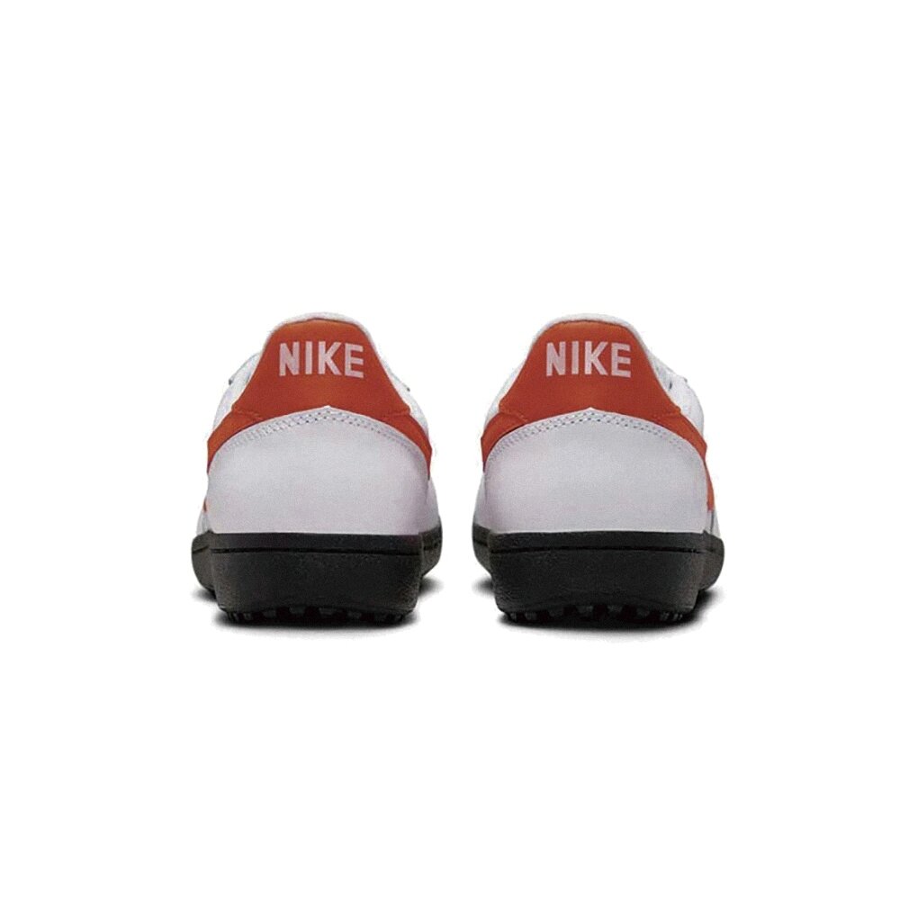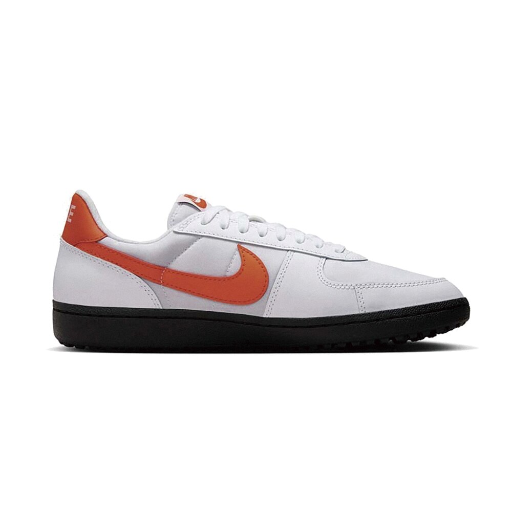 Field General '82 挾帶堅毅不拔的美式足球根源隆重回歸,再次震撼運動鞋界,重現美式足球造型。混搭柔滑皮革、合成皮革與強韌布質,選用經典白色與亮橘色配色,巧妙落在突起的黑色鬆餅格紋鞋底上方,更是畫龍點睛。深受 1980 年代傳奇球員的喜愛,這款復古設計讓人想起球員衝撞突破防線,在陳舊的人工短草草皮球場上奔跑的情景。「他在 20 碼位置、10 碼、5 碼——達陣!」
