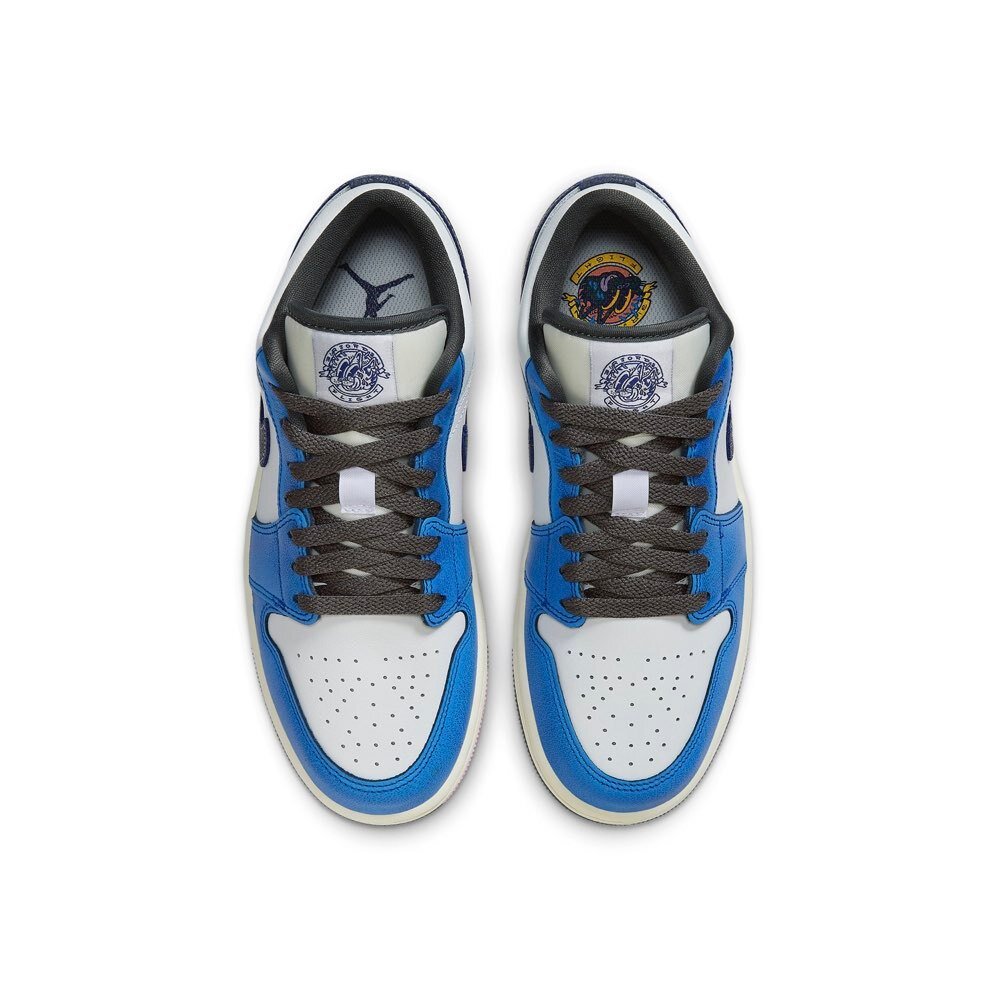Air Jordan 1 Low 「Flight Vintage」採用經典配色,包括白色、鐵灰色和深藍色。這雙鞋的白色皮革底座搭配深藍色滾花皮革覆蓋層、鐵灰色鞋帶、襯裡和環繞式 Swooshes。復古貓標誌、復古中底和鞋舌上的 Jordan Flight 文字向 MJ 的黑貓綽號致敬,進一步凸顯了復古魅力。最後的細節包括外底上的泡泡糖粉紅色點綴,以向 MJ 的棒球生涯致敬,以及特別的 Jordan Flight 吊牌。