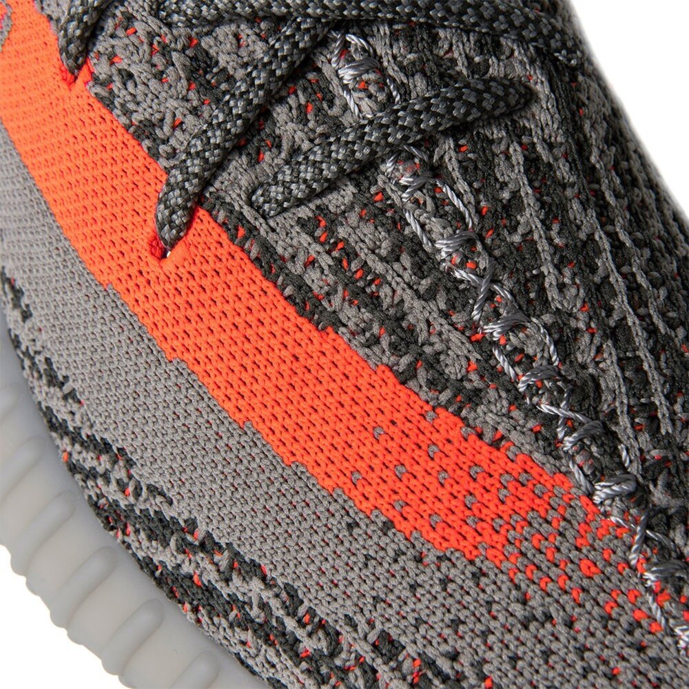 該款YEEZY 350鞋身整體以重新設計的灰色PRIMEKNIT編織出不規則條紋和波點,並將大熱的橘色半透明物料融入其中取代V2鞋側的「SPLY-350」字樣。
