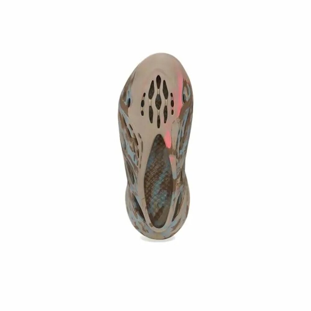 米色漩渦圖案、深棕色和灰色渲染著雕塑般的EVA 泡沫設計,提供與色彩混合進程相近的視覺感觸。