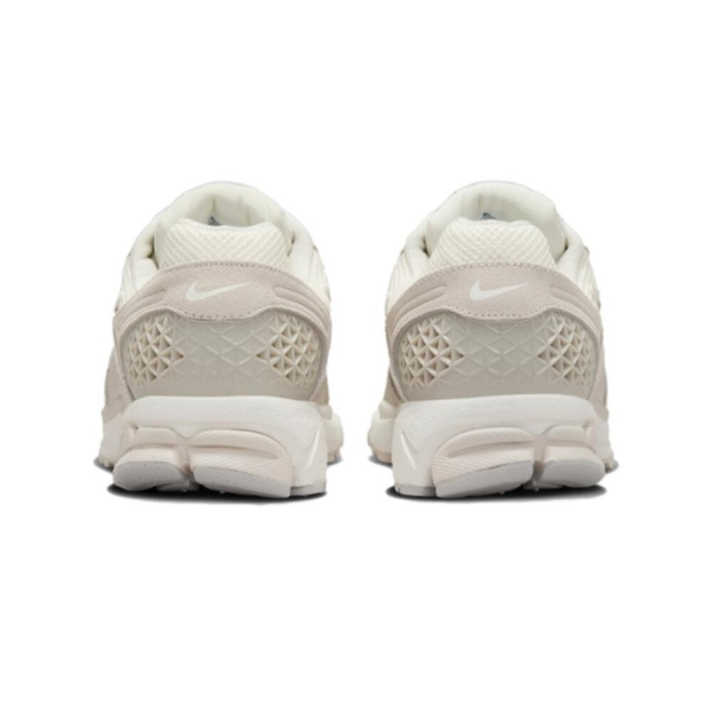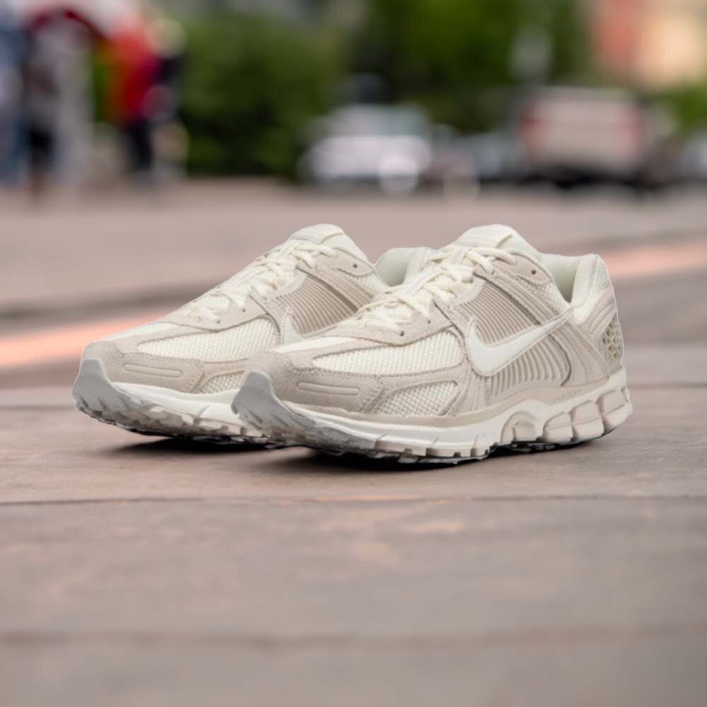 絨面革覆蓋層帶來更同色系的外觀。柔和的色彩與材料結合在一起,絨面革包裹著前腳掌、四分之一和鞋跟的拼接,打造統一的外觀。中底有淺色和深色兩種色調,外底只有一抹灰色。