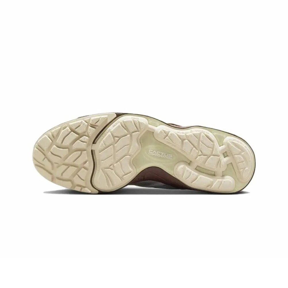 與他的第一款簽名運動鞋一樣,Zoom Field Jaxx 的設計完全符合 Travis Scott 的規格和商標風格。這個全新版本迎合了特拉維斯作為精英、高能量表演者不停歇的生活方式。在面對嚴格的全天候磨練時,它可提供牽引力、舒適性和透氣性。兩大標誌的混搭,鞋面以全粒面皮革和飄逸紡織品重新構想了 90 年代的 Nike Land Shark,而緩衝中底則借鑒了 90 年代 Zoom Spiridon 的設計線條。 Zoom Field Jaxx 配有前腳掌綁帶、網狀裝飾和 Cactus Jack 品牌標誌,從上到下帶來純粹的外形和舒適感。此外,超乾淨的白色和淺巧克力色配色讓您的運動鞋遊戲成為眾人矚目的焦點。