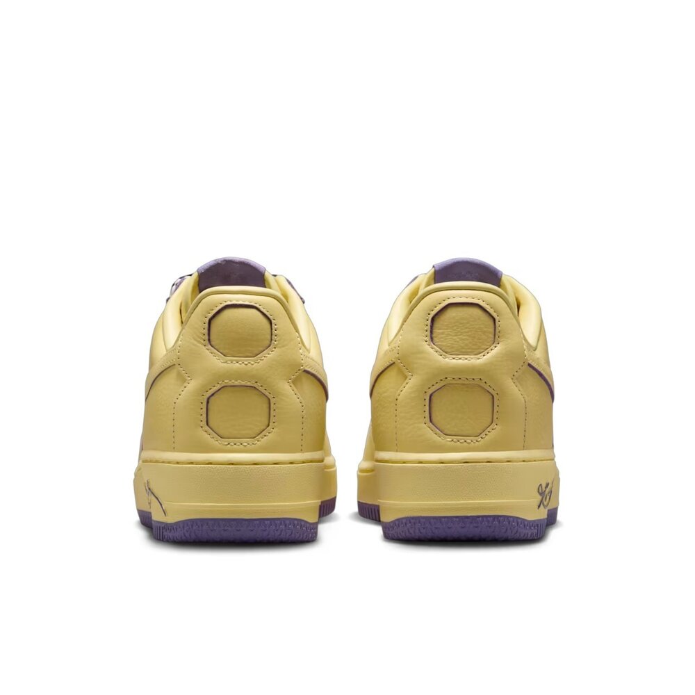 這款 Air Force 1 的星形鞋底改以重複的鞘狀標誌取代,而 Kobe 的五個冠軍年份則精細地刻印在鞋款同心圓外底紋路的五個圓環上。最後,如同所有 Kobe Protro 鞋款,這雙 AF1 搭載了升級且精心設計的科技,例如極致柔軟的 ReactX 泡棉搭配 Nike Air 緩震系統,提供極致舒適的腳感。