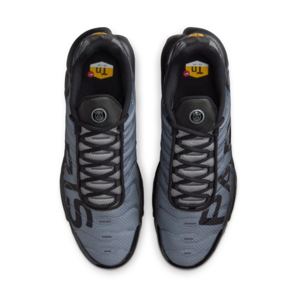 穿上 Air Max Plus 這款巴黎聖日耳曼版本,秀出傲人氣場。透氣網布,常保涼爽;可見式緩震系統,讓你能舒適地為球隊助陣。
