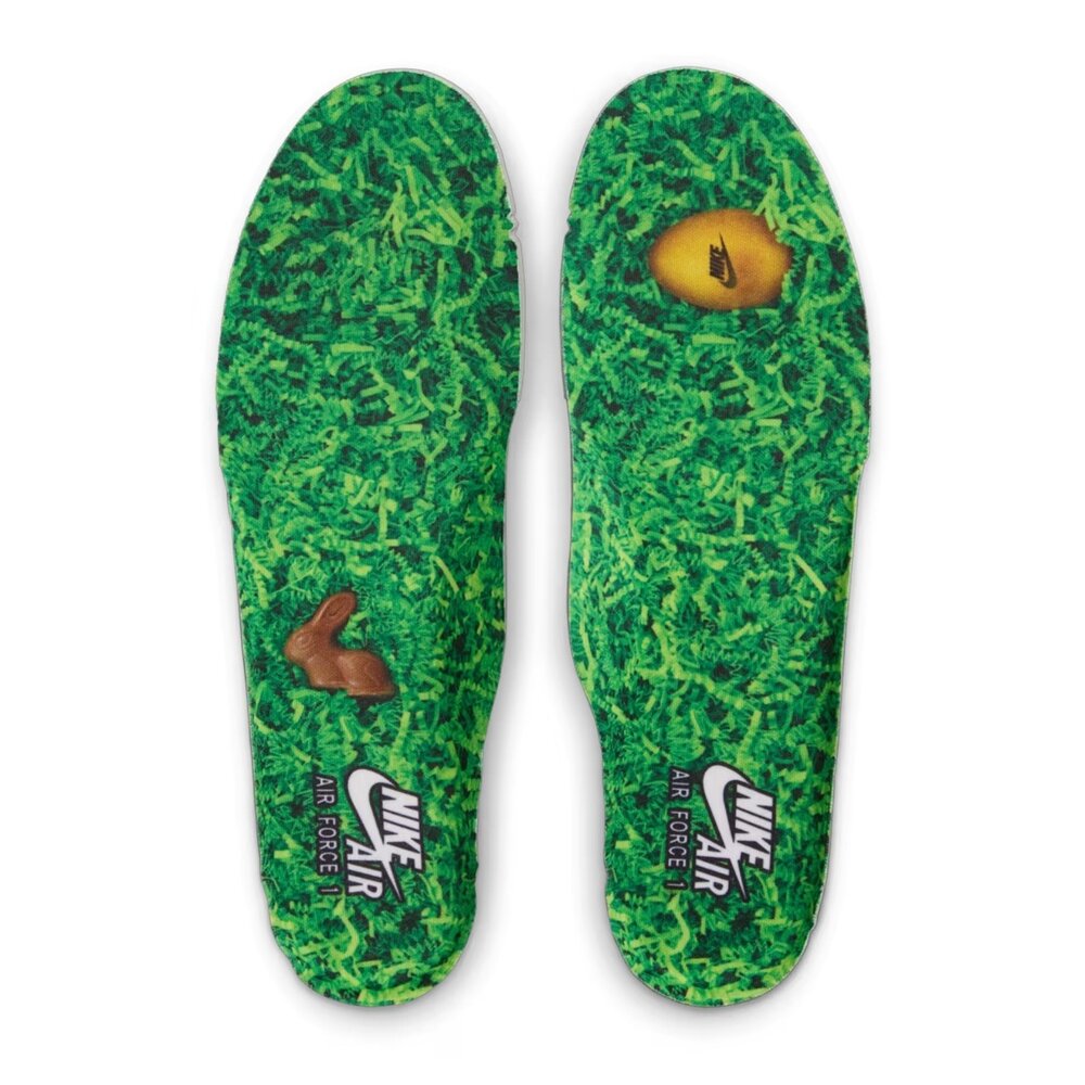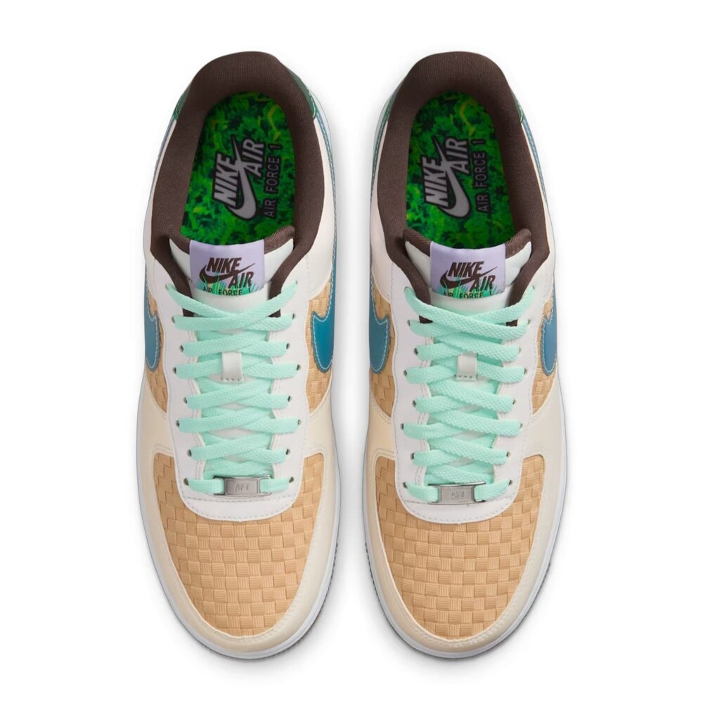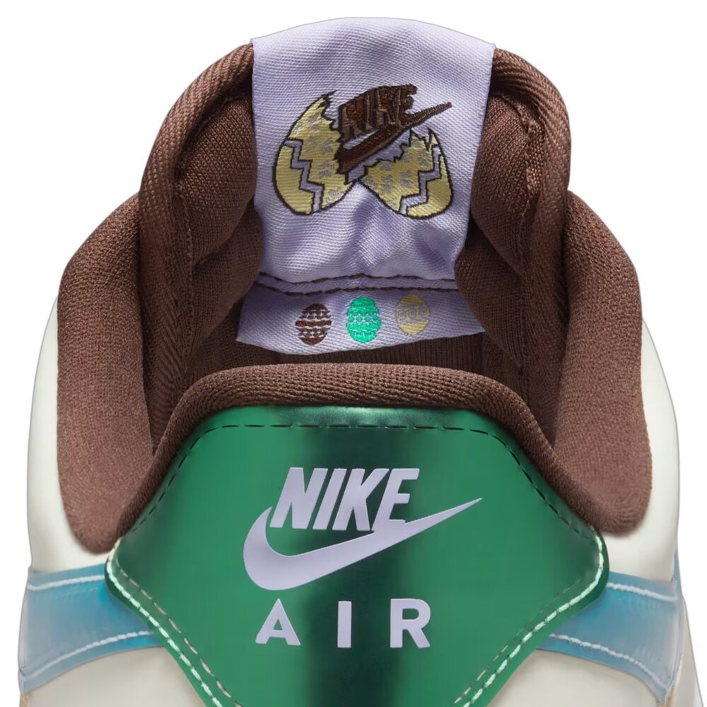 這款 Air Force 1 復活節版本採用以竹籃為靈感的梭織鞋面,搭配光滑如蛋殼的合成皮革,打造生動活潑的復活節兔意象。冰河藍 Swoosh 標誌、薄荷泡棉色後側覆片與淡巧克力色裝飾,為整體設計添加風味甜度。趕緊上腳你的週日勁裝,出發尋找彩蛋或糖果!