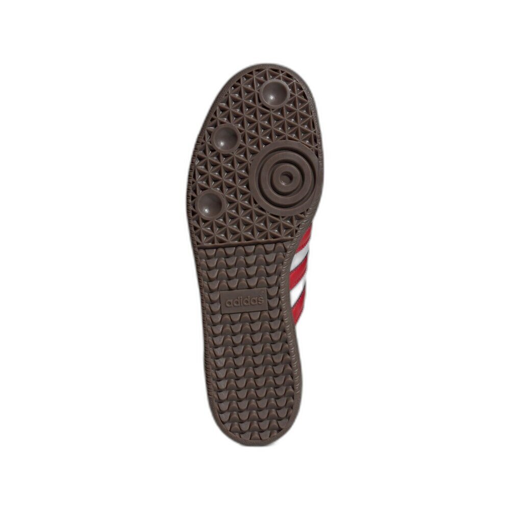 復古鞋面採皮革與麂皮材質,鞋頭T字型俐落設計,可與服裝搭配出色復古街頭風格。鞋側壓印金屬感「Samba」字樣,呈現奢華感。以足球鞋作為設計靈感的樞紐型底紋設計,搭配橡膠大底提供良好抓地耐磨效果。