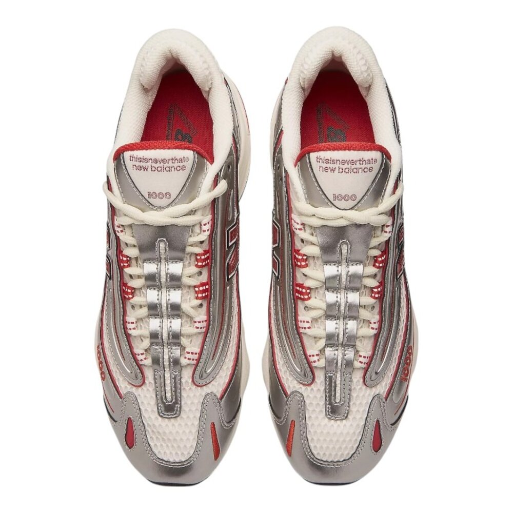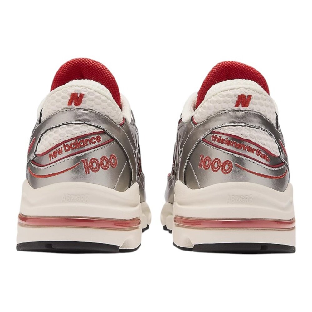 重新回歸的 1000 鞋款將千禧年代的經典設計重現眼前。1000 於 1999 年首次推出,呈現了當時大膽且富未來感的設計風格,同時展現滿滿細節感。此次合作韓國街頭服飾品牌 thisisneverthat 回顧了原版 M1000 的靈感,採用了引人注目的金屬色鞋面,搭配紅橙色的合成材質飾邊和刺繡細節、呼應了千禧年時期的高科技美學。大孔白色網眼織布的設計增加了透氣性,同時強化了鞋款獨特的復古感。分段式的鞋底單元內嵌ABZORB緩震技術,並配有Stability Web中足穩定支架,提供舒適與功能性。